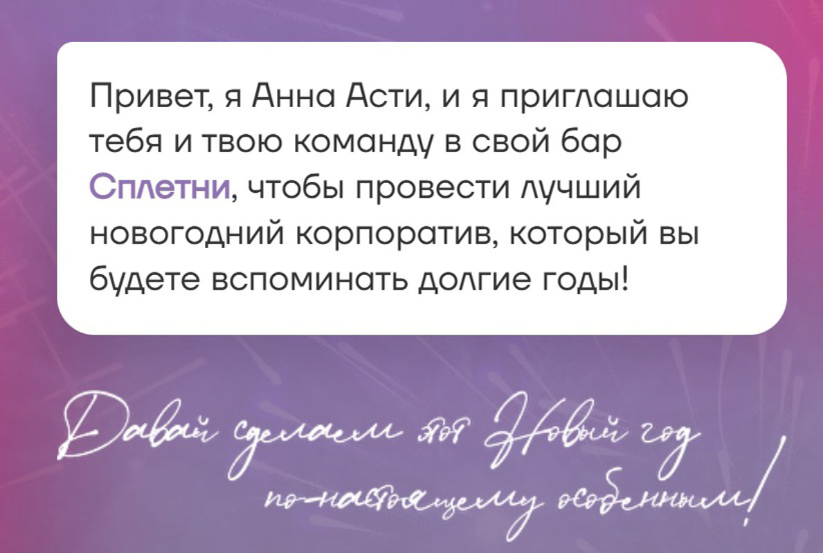 Приглашаю тебя отметить самую главную ночь года в фееричной атмосфере бесконечного праздника и, конечно же, самых сочных Сплетен!